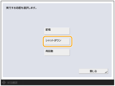 タッチパネルディスプレーに「リモートUIから保存ファイルをバックアップ中です。」というメッセージが表示されているときは、主電源スイッチを切らないでください。保存ファイルのバックアップができなくなります。 本製品の電源が切れるまでに、しばらく時間がかかることがあります。本製品の主電源ランプが消灯するまで電源プラグを抜かないでください。 プリント中に主電源スイッチを切ると、紙づまりの原因になることがあります。 シャットダウン実行中、またはシャットダウン終了後にしばらく製品が動作し続ける場合があります。本製品の機器音が止まるまでコンセントを抜かないでください。シャットダウンが終了すると、本製品の主電源スイッチが自動的に「 」側に倒れます。<強制OFF>を押して強制終了(正しい終了処理を省略)させることもできます。ハードウェアの終了処理時やネットワーク通信処理中に<強制OFF>を押すと確認画面が表示されるので<はい>を押します。ただし、最悪の場合、通信中のデータを破壊してしまう可能性もあります。また、本製品が故障する恐れがありますので、どうしても必要な場合を除き使用しないことをおすすめします。お客さまのデータの消失による損害につきましては、弊社は一切その責任を負えませんので、あらかじめご了承ください。 |
