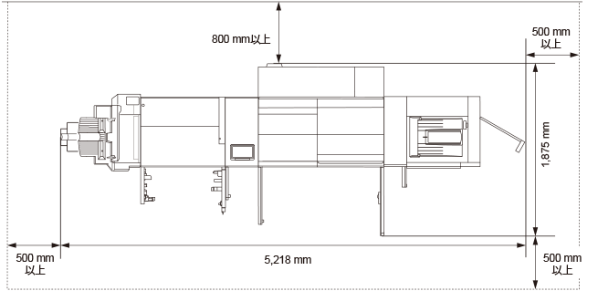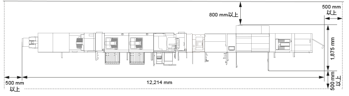 大容量スタッカー・J(重連時) | 1,803 mm×745 mm (1,250 mm *)× 1,141 mm (トップトレイ上端まで) * 排出トレイ排出時 | 約240 kg |