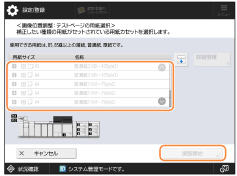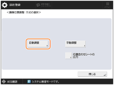 自動調整を行うジョブは単一の給紙段を使用することをおすすめします。 ユーザー設定用紙を使用して画像位置自動調整を行うと、投入ジョブ出力後に調整値が保存されます。 |