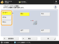 用紙の角の1か所をホチキスで留める場合は<コーナー>を選び、留める位置を選びます。