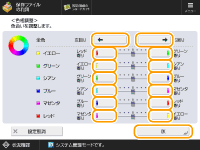 で調整します。各色を個別に設定する場合は、各色の左右にあるボタンで調整します。調整が終わったら<OK>を押します。