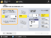 差し込んだ合紙が何ページ目に当たるのかをテンキーで入力します。たとえば、100枚プリントしたときに50枚目の次に合紙を差し込みたい場合は、「51」と入力します。