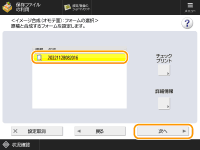 リストからフォーム画像を選んで<チェックプリント>を押すと、フォーム画像のみをプリントして確認することができます。また、<詳細情報>を押すと、フォーム画像のサイズや合成のしかたなどを確認することができます。