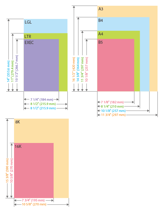 Paper Sizes | Paper Source (Standard) | Paper Source (Optional) |