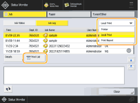 If "NG" appears in the "RESULT" column in the printed list, check the three-digit number preceded by "#"to find the reason and solutions. If (Settings/Registration) <Management Settings> <Device Management> <Restrict Access to Other User Jobs> is set to <On>, jobs other than those of the logged-in user are displayed as "***" and cannot be operated. If you log in with administrator privileges, the jobs of all users are displayed. |