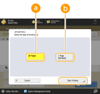<1 Page (Random)>: | Prints a page which follows by the currently printing page. One sheet of paper, which includes one page when performing 1-sided printing, and two pages when performing 2-sided printing, is output. |
