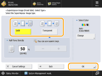 To superimpose the form image without adjusting the density, press <Solid>. To superimpose the form image with the density decreased, press <Transparent> and adjust the density.
