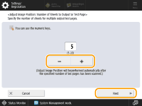 We recommend using a single paper deck for jobs with automatic adjustment. When you perform the procedure for automatic adjustment of the image position with the custom paper type, the adjustment settings are saved after the job is printed. |