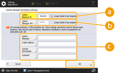 Press <Management Settings>  <User Management>  <System Manager Information Settings>.