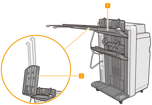 For the maintenance work on the trimmer, make sure to fold up the extension long sheet output tray to provide working space. When returning the extension long sheet output tray to the original state, move it slowly because the wire is long. |