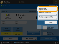 Appuyez sur <Modif. réglages d'impr.> et <Réglages favoris>.