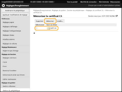 Sélectionnez le certificat CA que vous voulez enregistrer et cliquez sur [Mémoriser...].