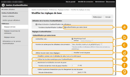 Configurez les réglages ci-dessous pour utiliser l'authentification par clavier.