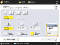 Appuyez sur <Modifier> dans <Format dispo.> et sélectionnez le format du papier pour la brochure.