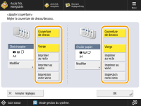 Pour ajouter une couverture, appuyez sur <Couverture de dessus>. Lorsque vous imprimez sur une couverture, vous pouvez définir où imprimer ; sur le recto, sur le verso ou bien sur les deux côtés.