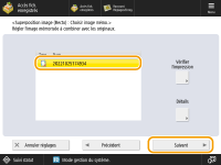 Si vous voulez imprimer une image de forme seule pour vérifier le résultat après impression, sélectionnez l'image de forme dans la liste et appuyez sur <Vérifier l'impression>. Si vous voulez vérifier le format de l'image de forme et le réglage du chevauchement, appuyez sur <Détails>.