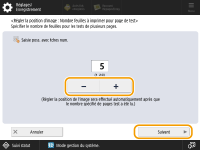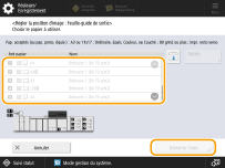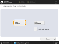 Nous vous recommandons d'utiliser un bac à papier unique pour les travaux avec le réglage automatique. Lorsque vous exécutez la procédure de réglage automatique de la position de l'image avec le type de papier personnalisé, les paramètres de réglage sont enregistrés après l'impression du travail. |
