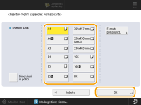 Selezionare lo stesso formato della carta che è stato caricato in "Document Insertion Unit-R".