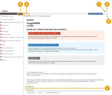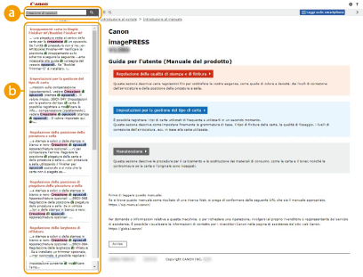 Fare clic per visualizzare informazioni su come visualizzare l'Guida per l'utente, come effettuare una ricerca e altre informazioni.