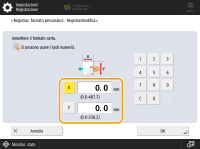 Specificare la lunghezza del lato <X> e del lato <Y>. Premere <X> o <Y> per inserire la lunghezza di ciascun lato usando i tasti numerici.