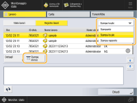 (Monitoraggio stato), viene visualizzata la schermata Monitoraggio stato, che consente di controllare la cronologia di utilizzo di ciascuna funzione, come la copia, la stampa, l'invio di e-mail, l'invio/ricezione di I-fax, ecc. Da questa schermata, è inoltre possibile stampare la cronologia di utilizzo di ciascuna funzione.![]() |