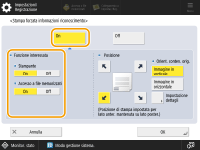 Premere <On> e selezionare le funzioni che stampano forzatamente le informazioni utente.