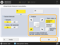 Selezionare <Immagine in verticale> per orientare l'originale in verticale oppure selezionare <Immagine in orizzontale> per orientare l'originale in orizzontale.