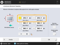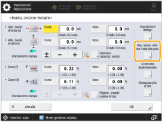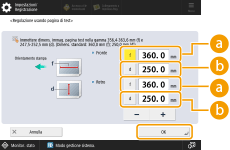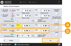 Quando si apre di nuovo la schermata <Regolaz. posizione immagine> dopo averla chiusa, premendo <OK>, i valori sulla schermata ritornano a <0>. Il valore di regolazione rimane tuttavia applicato. Se si ripetono i passaggi, leggere il valore dei segni di registro della nuova pagina e inserire il nuovo valore.