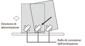 Per aumentare la pressione e la velocità del rullo di correzione obliquità in modo da spingere la carta, come mostrato di seguito, premere <+>. L'impostazione di un valore troppo elevato e troppo basso potrebbe causare un inceppamento carta. E se si imposta un valore troppo basso, l'immagine su una carta come la carta sottile potrebbe essere inclinata.