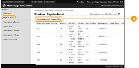 I dati di registro possono essere esportati e salvati come file CSV (*.csv) sul computer.