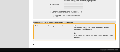 [Conferma certificato per comunicazione TLS]/[Aggiunta CN a elementi da verificare]Scegliere se verificare il certificato del server TLS inviato durante la connessione e il relativo CN (Common Name).