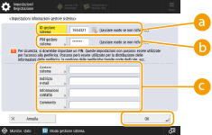 <PIN gestore sistema>Inserire un numero di 7 cifre o più corto per il nuovo PIN gestore sistema <Conferma>. Per conferma, inserire di nuovo il PIN e premere <OK>.