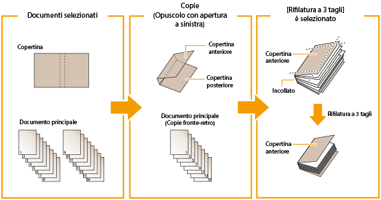 ![]() | Le stampe vengono incollate insieme per creare un opuscolo. |