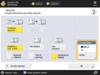 Premere <Cambia> in <Formato carta> e selezionare il formato carta della copertina e l'alimentazione carta.
