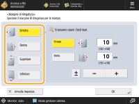 Premere <Fronte> o <Retro> quindi immettere la larghezza di ogni margine.