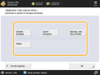 È possibile selezionare più tipi di qualità dell'immagine contemporaneamente. Tuttavia, <Schiarire immagine>, <Scurire immagine> e <Riproduz. aree bassa densità> non possono essere selezionati contemporaneamente.