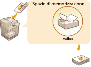 Tramite il salvataggio dei documenti in uno spazio di memorizzazione temporaneo, "Mailbox", è possibile apportare semplici modifiche ai file, come la combinazione di file e l'eliminazione di pagine dai file. Dal momento che la Mailbox non richiede impostazioni speciali, è possibile iniziare a utilizzarla rapidamente e con facilità. Una volta modificati i file, è possibile usarli in base ai propri scopi, per esempio la stampa.
