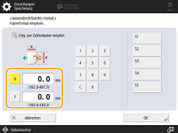| Drücken Sie <X> oder <Y>, um die Länge der einzelnen Seiten mit den Zahlentasten einzugeben. |