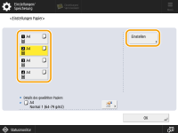 Wählen Sie die Taste für das Papiermagazin, in das Papier eingelegt ist, und drücken Sie <Ein.>.
