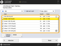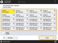 Wenn der Papiertyp des eingelegten Papiers nicht auf der detaillierten Einstellungsanzeige aufgeführt ist, können Sie diesen in der Liste für die Papiertypen registrieren.