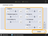 <Ton Schlafmodus> | Es ertönt ein Signalton sobald das Gerät in den Ruhemodus wechselt oder wenn das Gerät ausgeschaltet wird, wenn Sie <Einstellungen Schnellstart für Hauptstrom> auf <Ein> einstellen (je nach Situation startet das Gerät nur langsam und der Signalton ertönt nicht). |