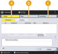 Der Bildschirm <Statusmonitor> wird beim Starten oder Wiederherstellen der Standardeinstellungen angezeigt. Wenn Sie den beim Start oder der Wiederherstellung angezeigten Bildschirm ändern möchten, siehe <Standardanz. bei Startup/Wiederherstellung>. |