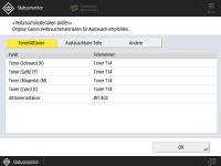 Überprüfen Sie den Artikelnamen der Verbrauchsmaterialien.