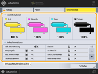 (Statusmonitor) drücken, wird der "Status Monitor"-Bildschirm angezeigt, in dem Sie den Tonerstand oder sonstige Statusindikatoren überprüfen können.