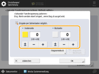 Wählen Sie <Vorderseite> oder <Rückseite> aus, und geben Sie den Wert mit <-> und <+> ein.