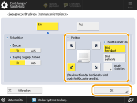 Legen Sie die Druckposition und die Ausrichtung des Originals fest, und drücken Sie dann die Schaltfläche <OK>.