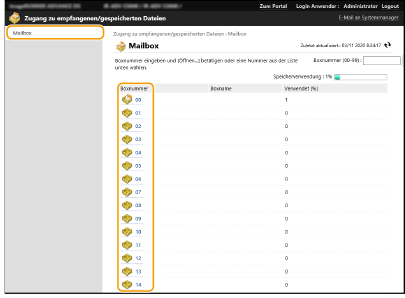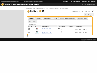 ![]() | Sie können das Remote UI verwenden, um in der Mailbox gespeicherte Dateien zu drucken oder zu löschen. |