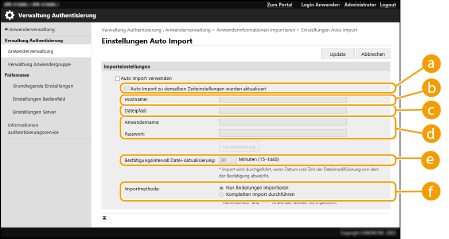 Sie können Daten für den Import manuell festlegen und Benutzerdaten aktualisieren.