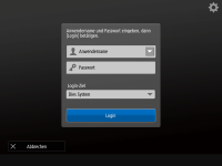 | | Benutzer melden sich mit dieser Methode an, indem Sie ihren Benutzernamen und das Passwort mithilfe der im Bedienfeld eingeblendeten Tastatur eingeben. Diese Methode ist unabhängig von dem verwendeten Authentifizierungsgerät verfügbar. |