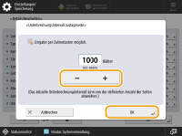 Verwenden Sie diese Funktion nicht, wenn das Papier Logos oder Muster aufweist, die bereits aufgedruckt sind (vorgedrucktes Papier), oder wenn die Papierblätter verschmutzt sind. Sie müssen dem ausreichend Papierblätter in das Papiermagazin einlegen, um die Einstellungsseiten ausdrucken zu können. Wenn während eines Auftrags mit automatischer Einstellung ein Papierstau auftritt, werden die Einstellungsseiten möglicherweise nicht ausgedruckt. |
